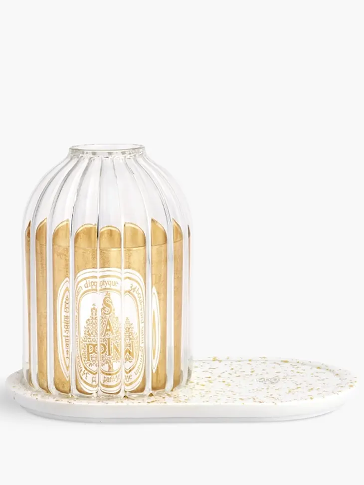 A luminous accent that elevates any classic Diptyque candle, this Speckled Gold Ribbed Holder ($225) glows with festive refinement. Its gold-flecked glass catches the light beautifully, making it a standout piece for the holidays, ideal for those who appreciate objects that feel as precious as they look.