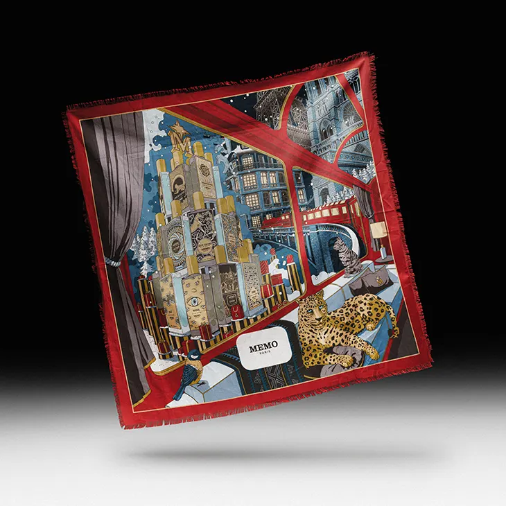 The box itself evokes the spirit of Paris at Christmastime, festive, radiant, and dreamlike. This year, the brand’s collectible furoshiki cloth returns with a new design that imagines an imaginary train ride through the capital, passing monuments and perfume bottles glittering under the city’s lights. Made from reusable cotton, it’s as thoughtful as it is beautiful, a keepsake designed to wrap, gift, and remember.