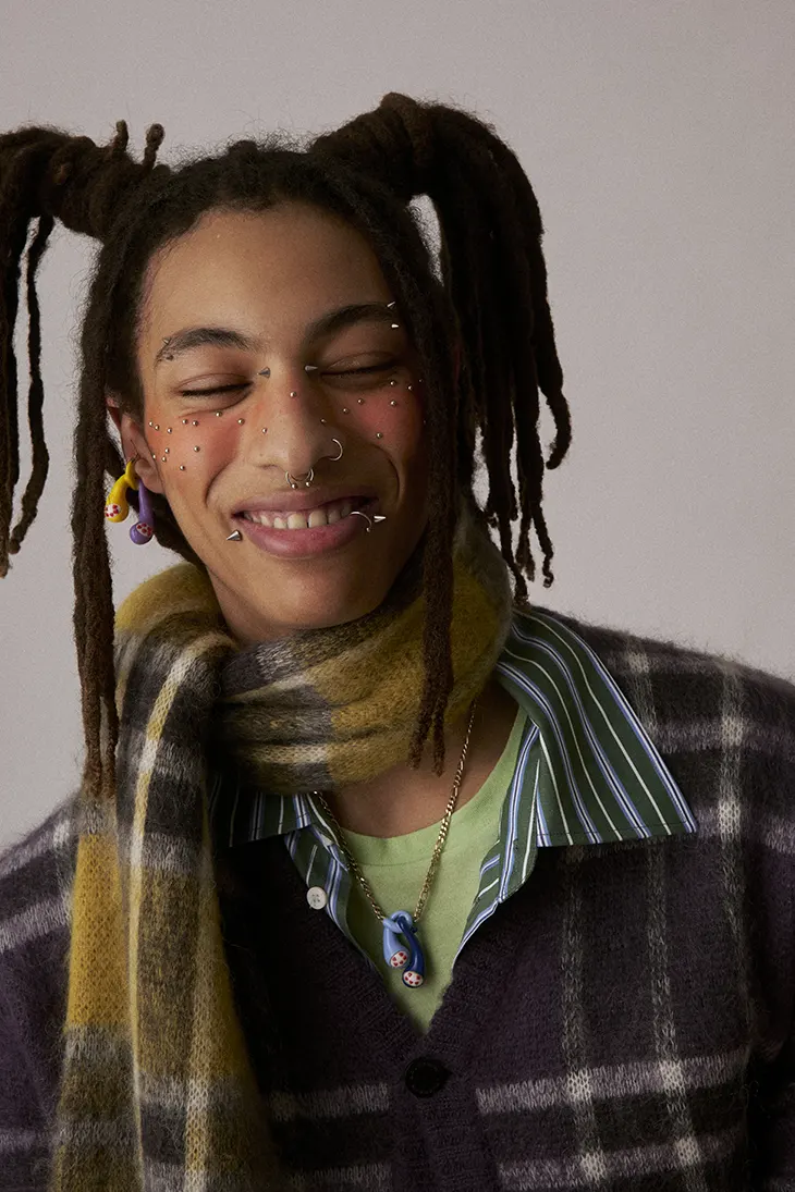 Creative Director: Charles Jeffrey Art Director: Alice Lees Stylist: Anders Sølvsten Thomsen Photographer: Oli Kearon Hair: Charles Stanley Makeup: Mari Kuno Casting: Max Kallio Movement Director: Kate Coyne Film: Tom Eames Press: PURPLE