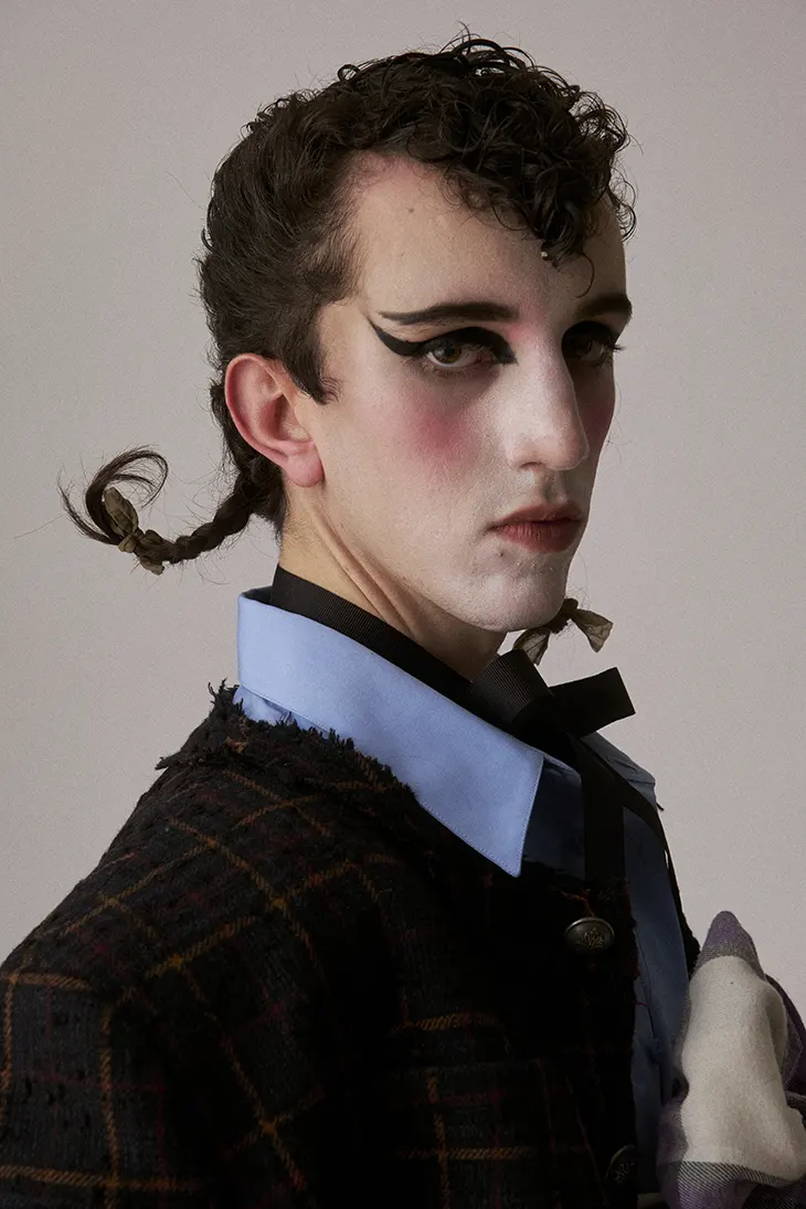 Charles Jeffrey LOVERBOY‘s Fall Winter 2026 collection, titled Thistle, demanded beauty that could sweat, smudge, and survive a night of defiance. At Dover Street Market Paris today, MAC Senior Artist Terry Barber delivered exactly that, leading a team of makeup artists to create looks that channeled the pagan-punk energy of Jeffrey’s immersive presentation and the decade-old club nights where Loverboy was born.