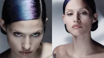 tied off her usually flowing locks into a middle-parted ponytail that was straight and sleek, keeping all the attention on her red lips.