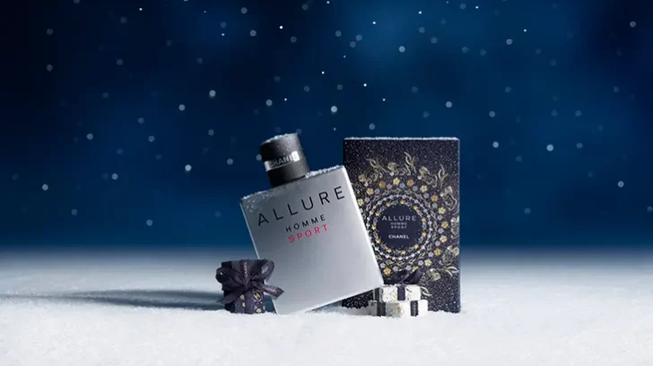 Chanel also revisits its signature scents in exclusive seasonal designs. N°5 Eau de Parfum, Coco Mademoiselle Eau de Parfum, and Chance Eau Splendide Eau de Parfum appear in pearly white sleeves with gold and silver detailing, while Bleu de Chanel Eau de Parfum and Allure Homme Sport Eau de Toilette arrive in deep blue sleeves enhanced with metallic accents.