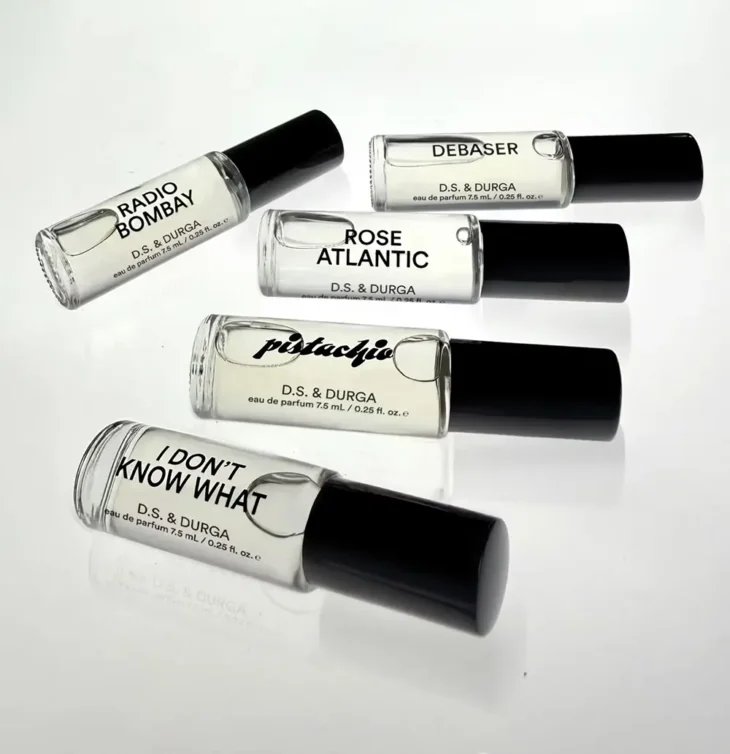 The selection reads like a condensed archive of D.S. & Durga’s approach to scent creation. Each fragrance carries a distinct narrative, grounded in atmosphere and memory. I Don’t Know What functions as a fragrance enhancer, introducing a transparent layer that amplifies other scents while maintaining its own subtle presence. Rose Atlantic moves in a different direction, building its composition around coastal references, where salt air, rose, and dunegrass come together in a bright, airy structure.
