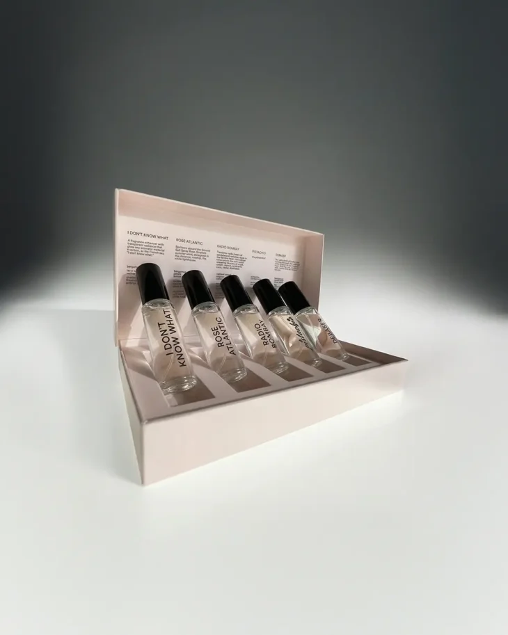 The set gathers I Don’t Know What, Rose Atlantic, Radio Bombay, Pistachio, and Debaser in 7.5 ml bottles, offering a focused way to experience the brand’s range across scent profiles and moods. Priced at $195, the set is now available through the brand’s official website.