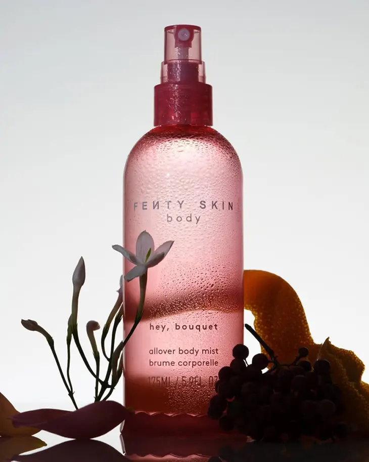 Fenty Skin offers two signature scents in the collection. Vanilla Flowers provides a warm and sultry floral gourmand experience, blending Vanilla Orchid, Sugared Woods, and Fluffy Musk. For a fresher, more vibrant option, Hey Bouquet delivers a bold, flirty floral fragrance with notes of Jasmine, Pink Peppercorn, and Orange Zest.