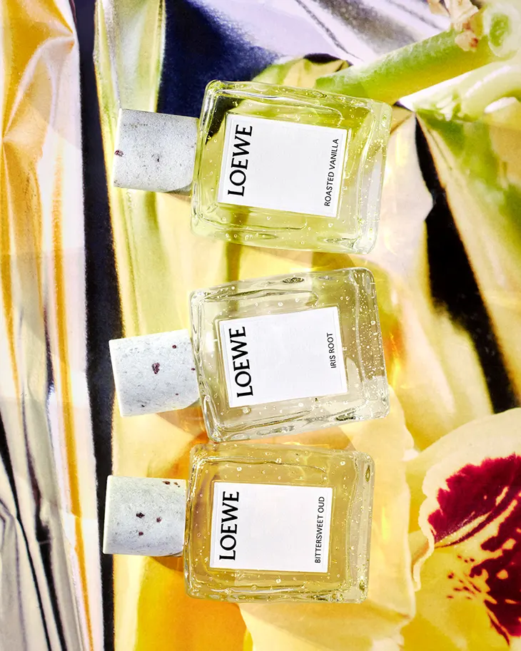 At the core of the collection lies a fascination with pure ingredients and their emotional resonance. LOEWE Bittersweet Oud explores the mystical depth of oud, layering its resinous base with bitter orange and sandalwood to create a contrast between darkness and vibrancy. LOEWE Iris Root unfolds through the powdery sophistication of iris rhizome, where angelica seed adds herbal softness and timut pepper lends a bright, citrusy lift. Completing the trio, LOEWE Roasted Vanilla redefines the familiar sweetness of vanilla through oakwood’s grounding intensity, cognac’s warmth, and a touch of pink pepper that sharpens its edges.