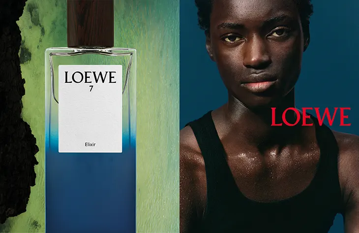 LOEWE Earth draws from what lies beneath the surface, with ambery and musky notes tied to layers of burnt soil. The imagery reflects this through exposed strata, where the land reveals its internal structure. LOEWE 7 Elixir turns toward less defined terrain, presenting a setting that suggests distance and uncertainty.
