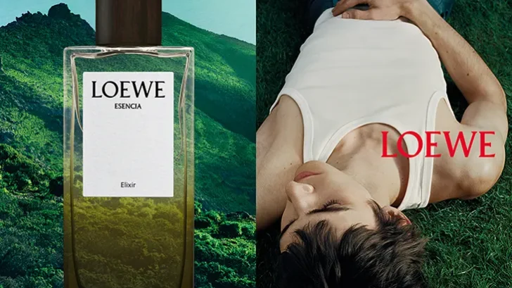 The campaign opens with LOEWE Aire Sutileza Elixir, the newest addition to the Elixir family. The fragrance carries floral and musky notes, layered with pear, bergamot, and lemon. The visuals position the scent within a field of wildflowers in bloom, where color and light echo its composition. LOEWE Esencia Elixir follows with an aromatic and woody profile, set against expansive mountain terrain.