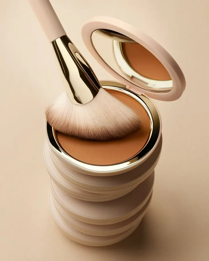 The bronzer launches alongside the Angled Powder Brush, created to work with the formula. The brush follows facial contours to support precise placement and controlled definition.