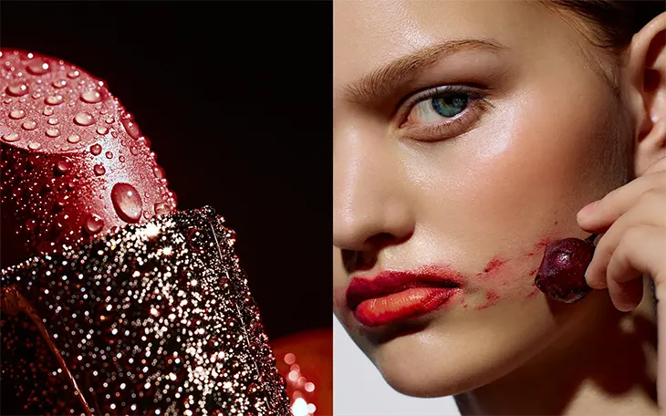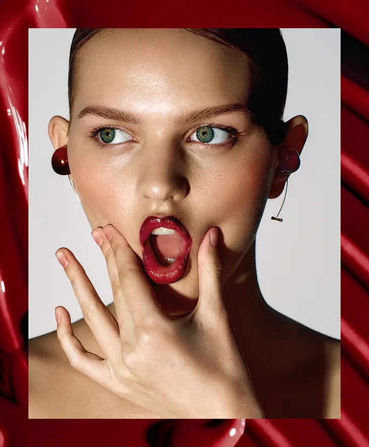 Photographed by Jillian Tranquilla, Cherry Coded unfolds as a DSCENE BEAUTY EXCLUSIVE built around color precision, featuring Kisrine Lopes and Abigail Tamke. Produced by Mas Studios Intl, the editorial explores cherry-toned saturation through tight framing and deliberate composition, favoring sharp close-ups and controlled portraits that place emphasis on lacquered skin, saturated lip color, and clean contrast.