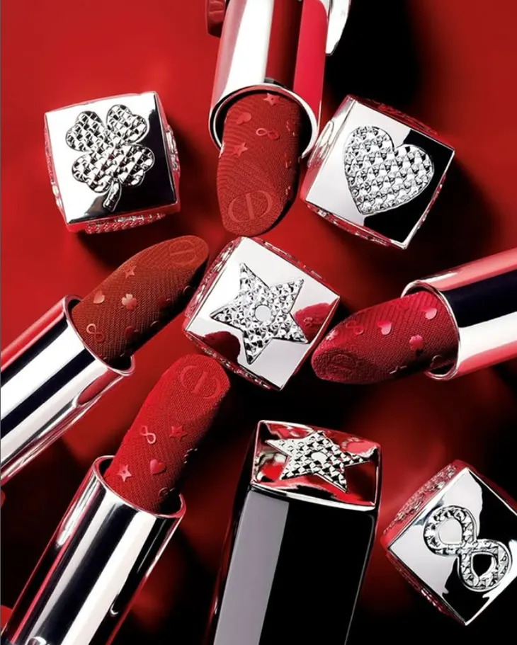 Each lipstick in the Lucky Rouge lineup features Monsieur Dior’s most cherished symbols, precisely applied to both the bullet and the case through Dior’s savoir-faire. The result is a series of collectible objects as considered in their design as they are in their formulation. The shades explore deep and bright reds across warm and cool undertones, finished with a velvety texture that delivers richness without excess shine.