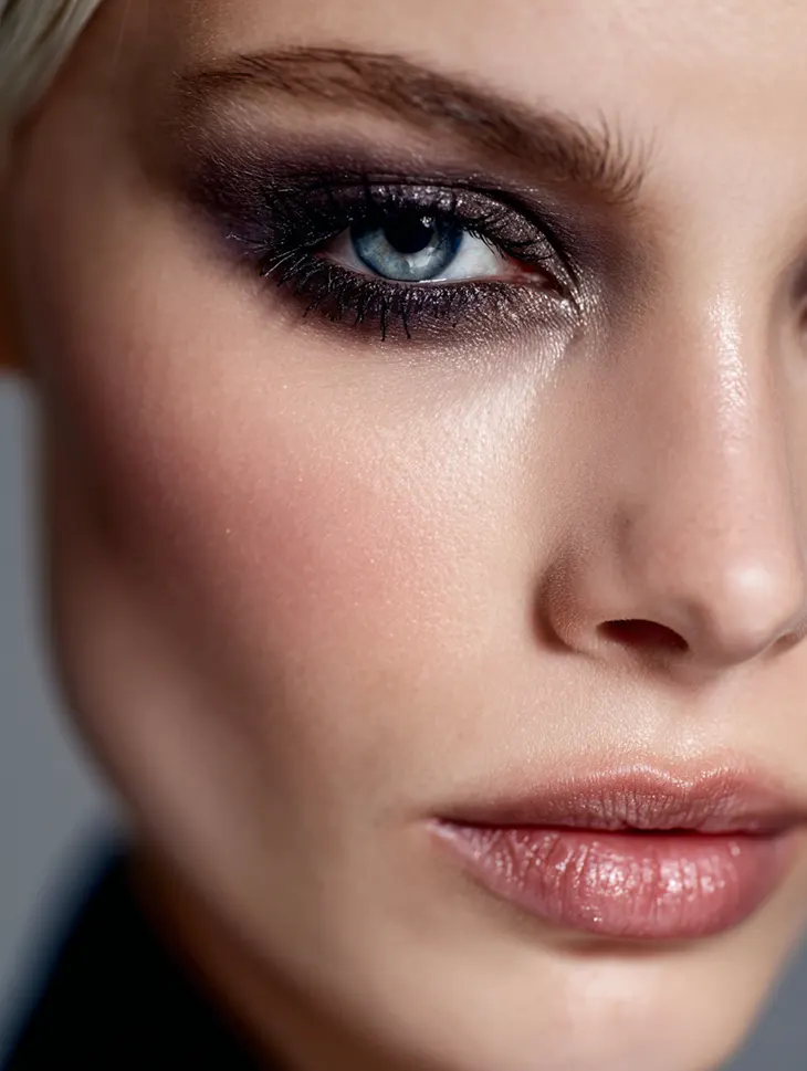 The smoky eye has not disappeared, it has simply tightened. Instead of heavy blending, the shape stays compact and close to the eye. Charcoal, espresso, or deep plum replaces jet black. The effect feels intimate and controlled, especially when lashes remain soft and skin stays understated. It is less about drama and more about tension.